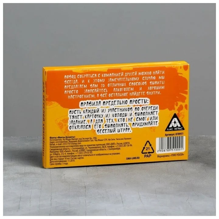Купить игра для компании "фанты буханты" 20 карт от 100 руб. с доставкой до пункта выдачи в Пущино. Интернет магазин ДекаМаркет. Оплата при получении.